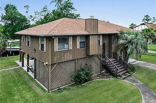 New Price! Sellers are ready for an offer! Waterfront dream home sitting on over half an acre lot. Includes: Boat launch, dock, huge garage & shed, outdoor kitchen, hot tub & palm trees. Inside find large kitchen w/ stainless appliances, wet bar, master suite w jetted tub, fireplace, ample storage, chandelier in foyer! Seconds to river!
