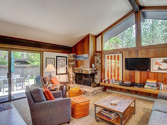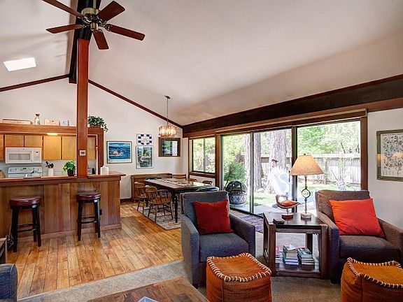 This home is a MUST SEE!! Being sold fully furnished and turnkey it's ready to welcome you home. This will be your NEW HAPPY PLACE! This desirable ALPINE model has beautiful original redwood trim throughout, the kitchen has been opened up to the great room with views of the impressive rocked fireplace. There are many large windows to let the natural light in. The rear patio and yard are spacious, well maintained, fenced and perfect for enjoying time outside with family and friends! Plenty of room for the kids and dogs to run around. This Unit produces good income through our vacation rental program, so keep enjoying those perks or it would make a great second home or full time rental as well! The detached Carport has lots of storage for toys or your golf cart. The complex is located close to downtown and Graeagle Meadows Golf Course.