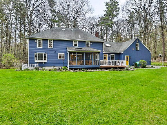 OFFER DEADLINE 5/5 at 6 pm! Sprawling, Hip-Roof Colonial, nestled on private 2.58+/- acre lot, 2 miles from picturesque Amherst Center & under 3 miles from quaint Milford Downtown. Gleaming hardwood floors greet you at side entry, leading to spacious laundry room and separate half bath, or directly to 3-car attached garage. Sun-soaked kitchen with custom cabinetry and granite counters, adjacent to massive, screened porch, and private composite deck overlooking nature. Decorative dentil moldings, bay windows, and French doors add to the prestige of this meticulously maintained property. Expansive dining room is perfect for large gatherings and leads to formal living room with natural lighting. On the other side of the main entry is a cozy family room with pellet stove insert and decorative hearth surrounding brick chimney. Upstairs includes primary suite with hardwood floors, walk in closets, and recently renovated full bath. 3 additional bedrooms, another full bath, and office space wired & plumbed for hot-tub complete 2nd story. Additional finished space over the garage could be playroom, workout center, or au-pair quarters. Dormered attic offers future potential living space, and there is ample storage in the basement. Pride of ownership is apparent the moment you walk into this beautiful home, wander through the charming gardens, up the front walkway, and into the back oasis; with privacy to relax in the hammock or play in the peaceful, flat yard. Open House 5/5, 2-4 pm.