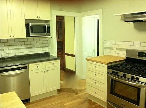 LOCATION, SPACE, CHARM AND RENOVATED! Dream commuter location on tree-lined one-way street on Rozzie/W. Rox. line. Bellevue Commuter Rail is just three blocks away, and buses to Forest Hills (Orange) are at the top of the street! Walk to the Arnold Arboretum, Rozzie shops & restaurants, or Centre St. in W. Rox! LARGE CONDO QUALITY 2-bed w/ heated sunroom & original details, i.e. moldings and hardwood floors throughout, 3 sets of french doors & built-in hutch. Fully renovated kitchen (2014), with all wood white cabinets, stainless steel appliances, including refrigerator, dishwasher, gas stove and microwave! Kitchen also offers a large pantry, butcher block island and freshly sanded hardwoods. Bathroom recently renovated as well. LOW UTILITY BILLS! 2011: New windows, Energy Efficient gas boiler & tankless Hot Water, blown-in insulation. Private back porch, and shared back yard brick patio. Private Washer and Dryer (INCLUDED in the rent) & storage in basement. Easy & ample street parking