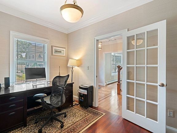 Move right in to this sunfilled Colonial with open floor plan. Living room and dining are connected. Oversized kitchen with white cabinetry includes separate eat in area. Family room open to the kitchen area has custom shelving and gas fireplace. Work from home with 2 home offices. Mudroom area just off the garage. Master suite with walk-in closet and elegant bathroom with separate tub and shower. 3 family bedroom all good sizes with 1 ensuite. 2nd floor laundry. Lower level playroom and exercise room is awesome bonus and has full bath. The back yard will delight with the built-in grill, patio and lounging area back up to the town forest. Morse Pond nearby for swimming, kayaking, family picnics and more. great opportunity to live in Wellesley beloved neighborhood, close to commuter train, town, schools and more! (Any Offers please submit by MONDAY 12pm)