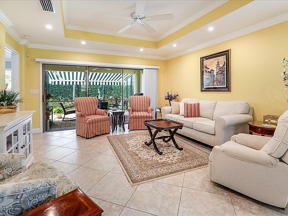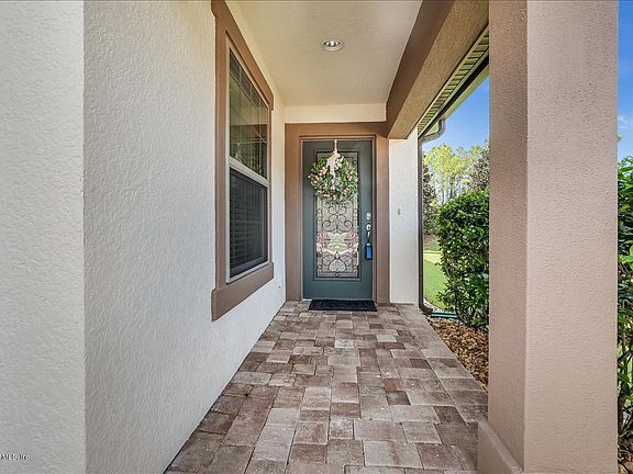 CDD Bond is paid off! Check out this well maintained Gray Myst located across from the neighborhood green space. Home boasts many features including a large lanai (covered area and bird cage) with $3500 automatic extended awning.with remote. Berm lot offers privacy for the time spent enjoying that glass of wine on the screened lanai area. House has fresh paint on the exterior and inside. Options include crown molding, 2'' window blinds, water softener, alarm system, tray ceiling, upgraded can lighting throughout, granite counter tops, 42'' kitchen cabinets and backsplash, eat in area in the kitchen, diagonal tile floors, triple patio doors overlooking lanai area, flex room with privacy doors, tiled shower in MBR, upgraded landscaping and pavered driveway and lanai. Low traffic area..