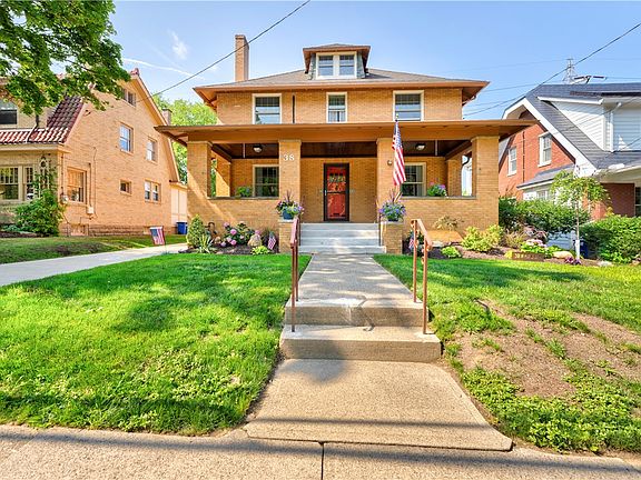LOCATION!!! First block of Hazel. Can't beat this location. Charming home in center of Mt Lebanon. Front porch welcomes you to 38 Hazel. Large living room with decorative marble fireplace and built-ins. Oversized dining room perfect for entertaining. Large windows to let the light in! Updated kitchen with stainless steel appliances. Added powder room in main hallway and pantry and coat closet added to dining room. Back door off kitchen leads to newly poured cement steps and new railings. Perfect area for grilling. Home has new cement driveway leading to THREE CAR detached garage! Level backyard. Upper levels boast of five bedrooms with two full and one half bath. Home could be six bedrooms but have counted as office. Newer windows throughout. Mini splits throughout home are for AC cooling. Lower level has finished room and half bath with several storage rooms and laundry room. Blocks from library,schools,shops and restaurants. (pictures virtually staged)