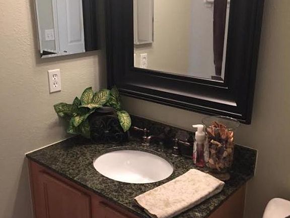 Open and bright 3/2/2 split floor plan home with bonus den/office available in quiet Shores neighborhood. Home features laminate flooring throughout main living areas and carpet in bedrooms and office/den. Eat-in kitchen furnished with stainless steel appliances and granite countertops. Master bedroom has en-suite bathroom with walk-in shower and large garden tub. Bedrooms and office/den share jack-and-Jill style bathroom. Interior laundry room has washer and dryer in unit. Two car garage provides plenty of parking and storage. Pet-friendly with non-refundable pet deposit. Tenant responsible for all utilities including electric, trash removal, and lawn care. Available November 1. Security deposit and first month s rent required to move in. All 18+ tenants must submit online application including background and credit check. Tenant pays for lawn care, trash, electric, and other utilities