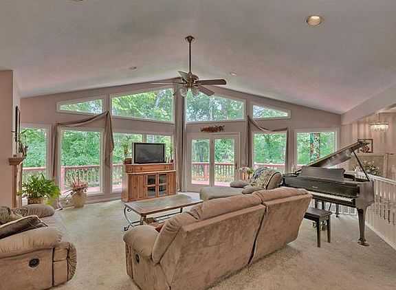 3 bed, 2 bath upstairs, separate dining room next to great room, 1 bed 1 full bath downstairs with family room, separate tub/shower in master bath with skylight, plant shelf in master bedroom, 2 fireplaces, 2 car garage with extra parking