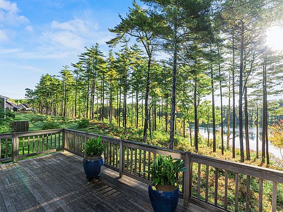 Welcome to this stunning “C” floor plan home in the highly desirable Rebecca's Landing at The Pinehills. As you step into the grand two-story foyer, you’ll be captivated by the breathtaking pond views. Two-story Great Room with wall of windows, cozy fireplace and hardwood flooring. The updated, open-concept dine in kitchen boasts granite countertops, Sub-Zero refrigerator, stainless steel appliances and provides access to a screened-in porch, deck and multiple outdoor spaces allowing for year-round enjoyment of the beautiful surroundings. Primary bedroom suite features hardwood flooring, fireplace, ample closet space and luxurious bathroom with double vanity, soaking tub and tiled walk-in shower. Additionally, there’s a den/office offering a quiet space for work or relaxation. Upstairs includes two bedrooms and full bath overlooking the Great Room below. Walkout lower level features full bathroom, two flex rooms and gym. Outdoor spaces abound, providing multiple areas for entertaining