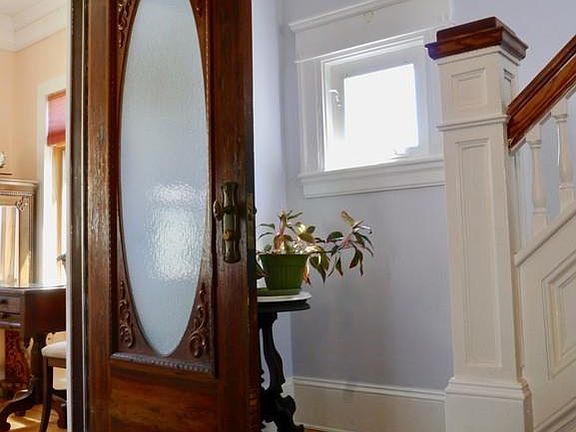 This well maintained American four square colonial offers old world charm and simply oozes character. In addition to many attractive updates, the home retains and boasts original details. Beautiful hardwood floors, high ceilings, exquisite moldings, engraved balustrades, and replacement widows carry throughout the home. Spectacular semi-open floor plan with a desirable sizeable kitchen includes an eat-in breakfast nook. The second floor offers three bedrooms and a full bathroom. You will enjoy the sun filled south facing enclosed back porch and organically maintained yard for gatherings and quiet times. In the backyard, you will find a variety of fruit-bearing plants and vegetable beds. The bike path abuts the back of this sun filled property. An ideal location for all that Florence has to offer, walkable to town. Come see and enjoy just how unique and special this property is.