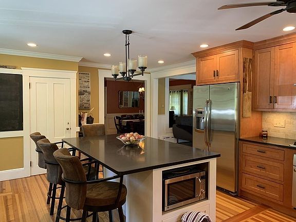 - Kit Dscrp: Ceiling Fan(s), Flooring - Hardwood, Countertops - Stone/Granite/Solid, Cabinets - Upgraded, Kitchen Island, Stainless Steel Appliances, Recessed Lighting, Remodeled, Exterior Access, Chair Rail, Gas Stove, Crown Molding