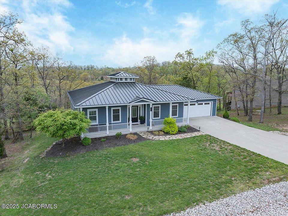 Coastal Craftsman Charm with Golf Course Views! This beautifully designed 4BR, 3BA home offers main-level living on a flat, private lot in a sought-after location. The gourmet kitchen features custom cabinetry, coffee bar, pantry, built-in buffet, and a large quartz island—perfect for entertaining. The open floorplan is filled with natural light, highlighted by a stunning cupola in the living room. The lower level offers a spacious family room, kitchenette, and a huge storage area. Enjoy outdoor living on the covered deck with panoramic views of the 13th hole at The Ridge Golf Course or relax on the covered patio. The fenced backyard provides privacy and is ideal for kids or pets. Additional highlights include sleek modern finishes, exquisite lighting, and a maintenance-free exterior. This home blends timeless elegance with contemporary style—don't miss your opportunity to own a piece of golf course living at its finest!