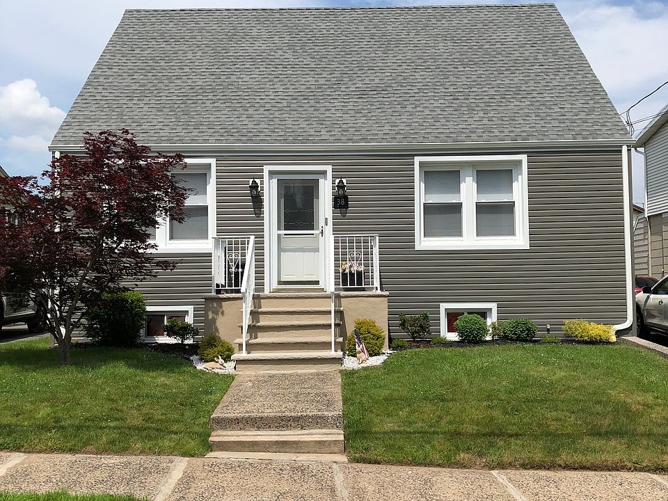 Turn key ready! Immaculate and well maintained cape style home in desirable neighborhood w many updates throughout; custom kitchen w granite counters, stainless steel appliances and tile back splash. First level offers living room, dining room, eat-in kitchen, master bedroom, full bathroom, wood floors. Second level offers two bedrooms, full newer bathroom, wood floors. Recreation room, office, half bath, laundry room, utility and storage room, walkout completes the basement level. Level backyard is perfect for entertaining; resealed driveway, newer roof, siding, gutters, soffits, windows. Bonus features: Central air condition, hot air units, extra large custom built shed, patio. Close to shopping district and public transportation. No flood and super low taxes. Just unpack and welcome home...