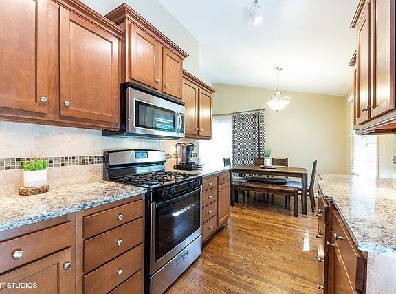 Beautifully updated ranch home located in Crystal Lake!!!. This home features a vaulted ceiling with hard wood floors and a spacious living and dining room. Kitchen has maple cabinets with crown molding, custom tile backsplash, granite counters, under cabinet lighting, and stainless steel appliances. The master bedroom has a big closet and a private 1/2 bath. All bathrooms have been updated. The full basement is finished with an additional room, full bath, laundry, and large family room. This home also features a long driveway, nice sized yard, and a 2 car garage. A/C 2017, Some windows in 2016, new roof in 2019.