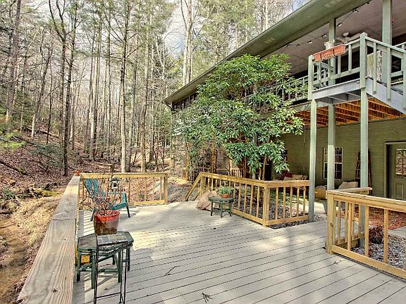 Rare Find in the Helton Creek Falls area FULL TIME sized home not a cabin! Wonderful all one level ranch with BSMT that includes a 2 car GAR & an awesome workshop! This GIANT country kitchen is the heart of this home with bay window, large enough for all the family on Holidays. Vaulted ceiling living room with beautiful fireplace that opens out onto a large screened covered porch. 3 bedrooms on the main level, finished basement that could be used as another bedroom or a family room. New deck along a nice branch. Screened in covered sleeping porch on terrace level so peaceful amongst the mountain laurel and cedar trees this highly coveted area of Blairsville is in the Heart of the mountains. Roof 1 Yr Old, HVAC 2.5 years old. Wood stove in BSMT