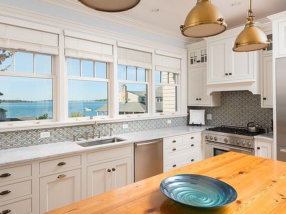 EXTRAORDINARY WATERVIEWS! Enjoy the breathtaking views of Hingham Harbor and NORTH BEACH from this gorgeous five bedroom shingle style home with over 6400sf of living space. NEW IN 2008, this stunning home is located in Hingham's highly coveted CROW POINT area just a few steps to North Beach. This home is perfectly designed for family enjoyment or entertaining. Four levels of SPECTACULAR LIVING including expansive dining room with 10' high coffered ceiling and fabulous views with French doors leading to private deck, kitchen with southern yellow pine island countertop, Carrera marble counters, Thermador range and refrigerator as well as butler's pantry. Fireplaced family room features not only amazing water views but coffered ceiling, surround sound, numerous custom built-ins and sitting area. Master suite with built-in speakers, sitting area and awesome custom master bath with radiant heat. Four more generous sized bedrooms and two more full baths with carrera marble countertops comprise the second level. Walkout 1000sf basement with water views, bath, laundry unit, custom stone fireplace, kitchenette, gym area and plenty of storage. Outdoor shower, heated garage, bluestone patio and private deck that allows you to relax in the sunshine and take in the waterview. Don't forget about the third floor bonus room with terrific views. WALK TO YACHT CLUB, Beach, Downtown and only a five minute drive to the Hingham commuter ferry and train! This is truly a DREAM HOME!