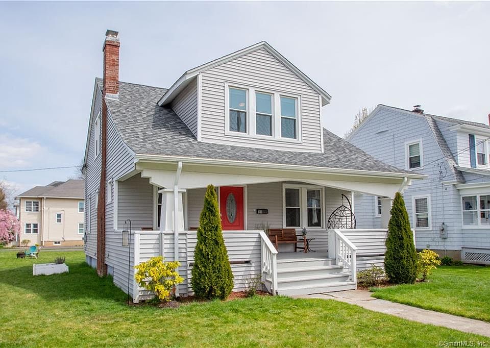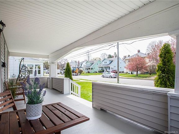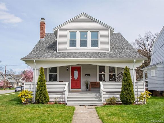 Located just a short walk to Blue Back Square & West Hartford Center, this move in condition Bungalow/Cape style home is loaded with charm and character! The inviting front porch with westerly exposure is the perfect place for a relaxing dinner, cocktail or to entertain family and friends. The large back yard offers plenty of space for yard games, yard toys and equipment, room to play ball and more. Enjoy an open concept lifestyle with quality updates throughout. On the main level, the living room is open to the large dining area, each space has hardwood flooring and is open to the remodeled kitchen featuring tile floors, granite counters, gas cooking, recess lighting, plenty of cabinet/storage space and stainless steel appliances. A private room on the first floor makes a great home office, playroom, fourth bedroom or exercise space. A remodeled half bath with laundry area rounds off the first floor. Upstairs you will find three generous size bedrooms with hardwood floors, two of which have fantastic walk in closets. The full bathroom has also been updated with a great tiled shower! There is also a sunroom on the second floor, which overlooks the huge yard, that is currently used as a home office. The basement is perfect for all your storage needs with great built in shelving. The home also features replacement windows, vinyl exterior siding, a newer roof (2014), gas heat & gas hot water. Convenient to all major highways, shopping and so much more, this is not to be missed.