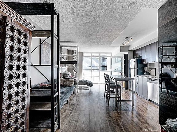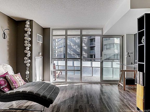 Modern Open Concept, Large 620 Sf One Bedroom With Work Space. Spacious Finished Balcony With Great View. Large Walk In Closet. Updated Laminate Flooring. Great King West Location. Steps To Liberty Village, Transit, King & Queen St. Minutes From Entertainment & Financial Districts