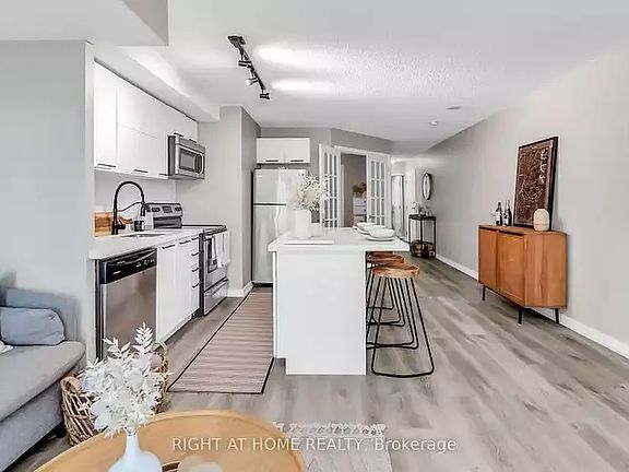 Welcome to your urban oasis! This meticulously renovated condo boasts convenience, style, and breathtaking views of the downtown skyline. Open concept and spacious, great for hosting! Unique layout with two washrooms! Located just steps away from the King St. W streetcar, commuting has never been easier. (Future Subway Line/Ontario Line) Key Features: New Quartz countertops and backsplash, new custom kitchen island, new flooring throughout. Just steps from Longos, Shoppers Drug Mart, Canadian Tire, Liberty Village, King and Queen Street West! Close to Budweiser stage and BMO Field. Walking distance to Child safe Playground and Private Dog Park. Newer Fridge, stacked w &d, s/s full size kitchen app, stove, microwave, dishwasher, all existing light fixtures. Excellent building amenities and 24 hr concierge. Parking spot close to elevator and locker for Storage.