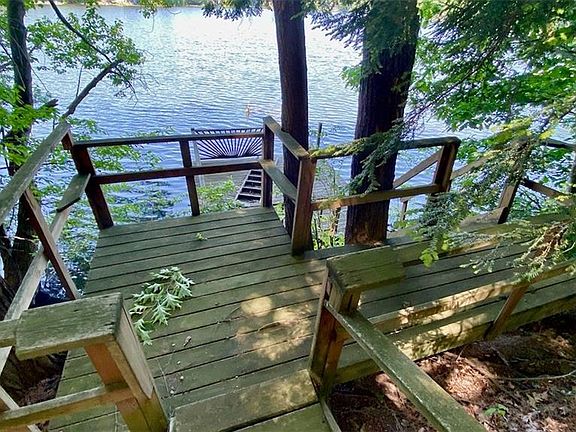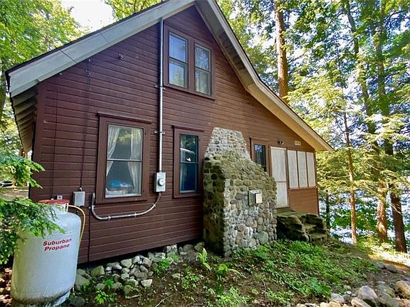Pleasant Lake Waterfront Camp! Swimming, boating, fishing, scenic views all await the new owner. This private camp is ready for you and your family to start making memories. The home has four bedrooms and a full bath, electric heat and a stone fireplace as a bonus! All of this is being offered furnished which makes this a must see - call today. Pleasant Lake is a quiet inland lake (no motorboats allowed!).