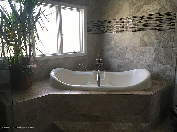 Spectacular Custom Home with open floorplan on the lake, 4 spacious bedrooms, 4 baths. Breathtaking views from the gourmet kitchen, LR, DR and MBR. Remote controlled skylights w/rain sensors & shades in MBR. New master bath is like your own spa with separate shower and Jacuzzi tub! 1st floor BR can be a home office. Walkout basement, with a complete 2nd kitchen & wet bar, perfect for entertaining. Walk down your multi-level deck to the floating dock, enjoy a paddleboat sunset ride. Have a BBQ, enjoy the unique Fire/Water feature and inground speakers. The tranquility of the country with the convenience of downtown shopping and restaurants. The Matawan train station and PNC shuttle are walking distance from the home. No driving necessary! Train into the city in an hour. Must see!