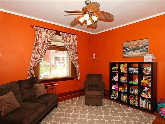 Super cute brick bungalow, with gorgeous refinished wood floors, natural color woodwork throughout, great size rooms and kitchen, as well as an attic that could possibly be converted for extra rooms. gas fireplace. Full basement, nice flat yard, 1 year old furnace!