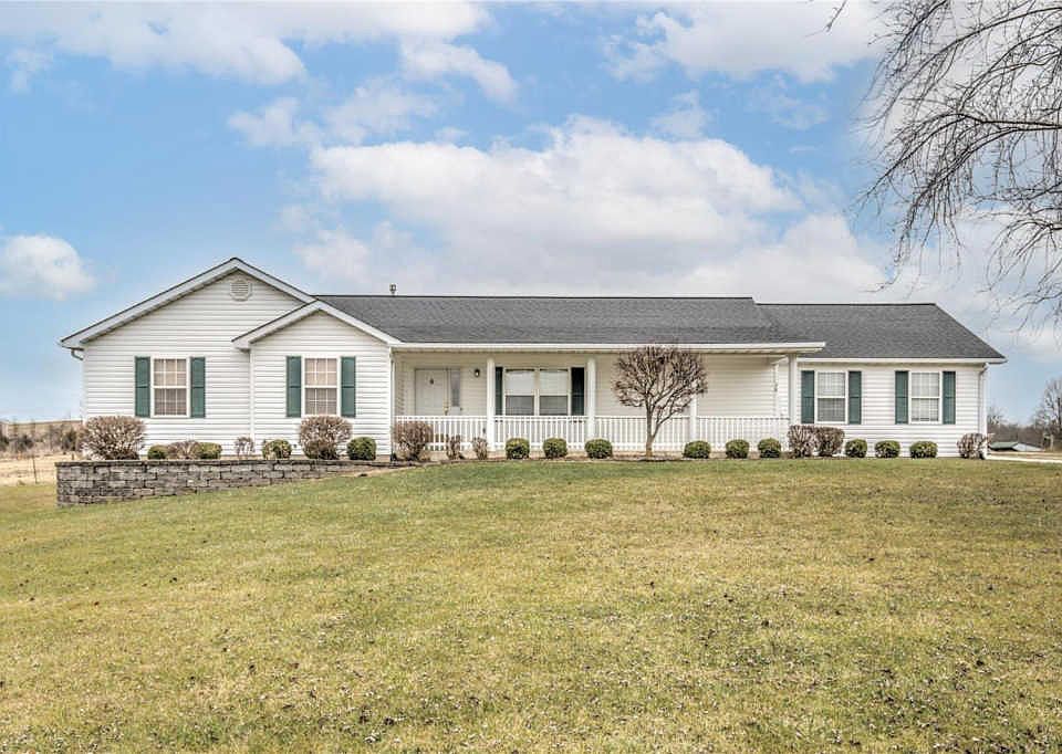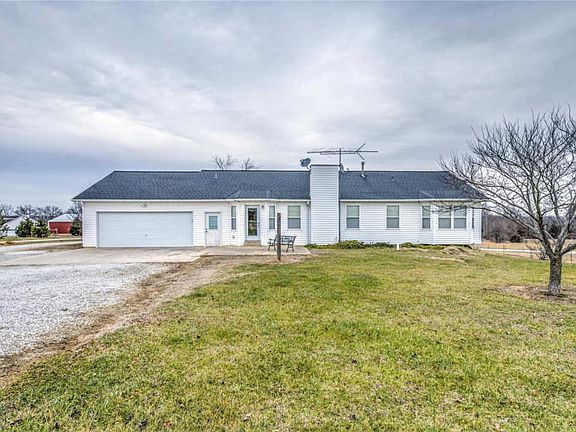 Ranch home sitting on 6+ acres with a barn- great horse property! Home features 3 bedrooms and 2 full bathrooms. As you pull up you are greeted by the large front covered porch. Enter into the vaulted great room with gas fireplace. Kitchen has lots of counter top space, a desk area, pantry, breakfast room with a bay & french door to the patio. Master bedroom is large, with a bay window, walk in closet. Master bath suite has double sinks with a new vanity top, separate large soaking tub & shower. Hall full bathroom has new vanity top. Main floor laundry room. Basement is unfinished with a walkout, an egress window and rough in for bathroom, ready for your finishing touches! Oversized attached garage with work bench, storage closet and a service door. Out building/Barn is 30 x 40 with 3 9x9 horse stalls & has a 10 x 40 lean to with part of it enclosed. Electric and water at the barn and also at the trough. Property also has a small pond with windmill. Seller providing home warranty plan