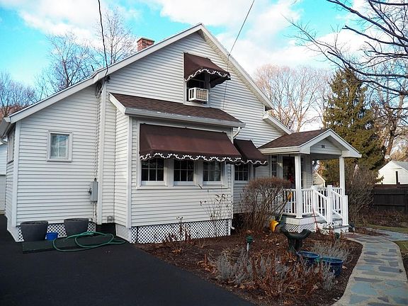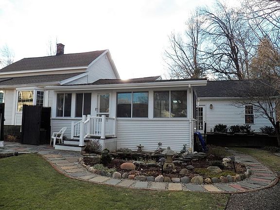 Unique! Very well cared for Bungalow with super updates. ADORABLE features along with newer roof, windows, siding, furnace, central air. Relaxing entry "reading room" with hardwood flooring and skylight. Spacious Living Rm with painted wood flooring, faux fireplace and charming alcove. Dining Rm w/ vaulted ceiling, wood flooring, & bay window for lots or light. Kitchen w/ modern colors, breakfast bar & all appliances. Rare Antique wood stove operates too, if needed! Bedroom with lots of windows, built-ins, pocket door & access to amazing 3 season Sunroom - completely furnished for your advantage! Half bath features pretty stained glass window. Second floor features Bedroom w/ built-in desk, a large Full Bath w/ Skylight, and walk-in closet. Finished room in basement, as well as laundry area w/ appliances - including upright freezer. Basement workshop is a DREAM of organization - tools remain! BEAUTIFUL fenced backyard with patio, plantings, and goldfish pond. CHARMING HOME!!