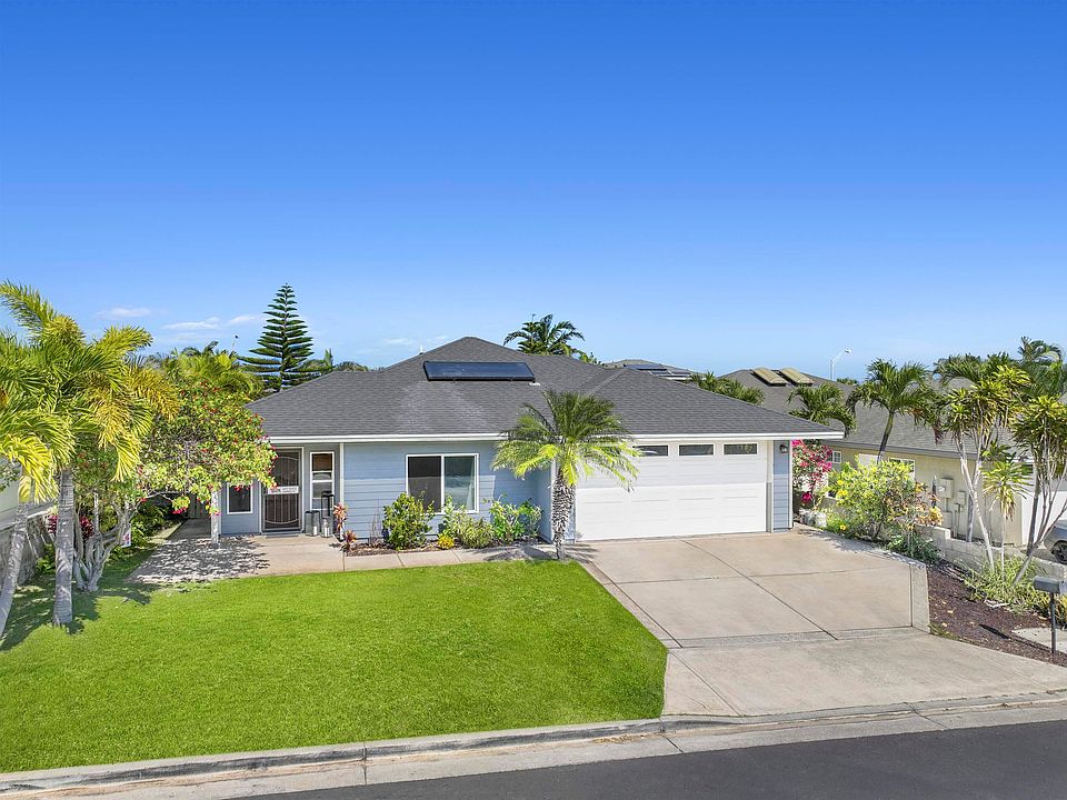 Welcome to the highly sought after “The Greens” at Maui Lani! This spacious and airy 3 bed 2 bath single story home boasts an extremely convenient and open floor plan with easy access to every corner of the home. It is located on a cul-de-sac street that dead ends at a huge park with epic West Maui Mountain views. You will LOVE how the Master bedroom has a sliding glass door that opens to the large tropical backyard with a pet friendly perimeter wall. The *spacious lot* is bordered by majestic Cook Pines trees and an assortment of palm trees giving the feeling of retreat and privacy while being in the heart of Maui. Maui Lani is a wonderful master planned golf course community in Central Maui, located in Kahului and very close to schools, parks, shopping, golf, restaurants, the hospital, airport, university, and the beach. Being sold in AS IS Condition. Showings M-F anytime. No weekend showings.