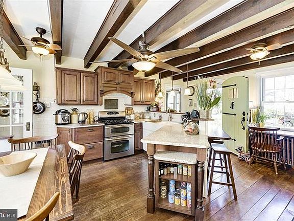 The feeling of English Countryside is apparent from the moment you pull up to this charming cottage reminiscent of the picturesque homes of the English Countryside. Stroll up the slate walkway while taking in the view of the brick front with just the right amount of ivy hugging one side, and beautiful shutters framing the windows. A welcoming feel embraces you as soon as you enter the home. Stone fireplace and wood beams are the focal point of the kitchen that offers plenty of room to sit and catch up with family and friends. The light filled dining room offers numerous windows and double French doors leading to a charming brick patio. Hardwood flooring throughout most of this exceptional home. A side mudroom is the perfect side entry with beautiful tile floors, long built-in bench, charming coat hooks, closet, and large windows. Nearby you will find a beautifully redone full bath. A second fireplace is found in the large family room offering hardwood floors and beautiful double French doors leading to a wonderful covered patio that overlooks the landscaped backyard. A charming living room can double as an office with view of the front yard, allowing you to watch the world pass by. Upstairs the hardwood floors continue throughout the 4 bedrooms with the master bedroom offering French doors that lead to a wonderful deck overlooking the charming backyard where you will find lovely gardens, generous shed, and a walkway to a quiet back ally where you will find additional parking. To good to be true? Seeing is believing!