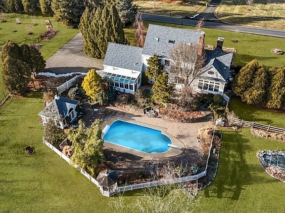 Welcome to 38 Larsen Road in East Amwell, a beautifully maintained home set on a picturesque, park-like property offering privacy, charm, and exceptional outdoor living. This spacious residence is filled with natural light and a warm, inviting atmosphere. The main level features a formal dining room, home office, bright eat-in kitchen, and a generous great room ideal for everyday living and entertaining. A full first-floor bath and main-level laundry add modern convenience. The second floor offers three well-appointed bedrooms and two full baths, including a comfortable primary suite with a spacious closet and dressing area. The third floor provides flexible space with a large storage area or potential nursery, plus an additional finished room perfect for a home office, studio, or possible fourth or fifth bedroom. A full unfinished basement and two-car garage offer ample storage. Step outside to your private backyard retreat, featuring a fenced yard that blooms like a botanical garden from spring through fall. Enjoy an inground pool with a pool house including a bar sink, changing room, and outdoor shower. A covered patio with a year-round swim spa, serene pond, and fenced play area complete the outdoor space. Notable updates include pool liner (2020), roof (2023), garage doors (2016), HVAC (2017), sump pump and French drain system (2017), sunroom addition, fresh interior paint (2025), and a full landscaping clean-up completed November 2025.