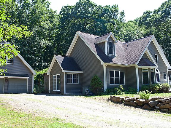 Private Lake House retreat on beautiful Bashan Lake, this must see custom-built, contemporary year-round home is sited on 4.32 lush acres. Part of the Laurel Cove Beach Association, the home is located down a private drive and boasts an open-concept featuring a beautiful family room with vaulted ceilings and a floor to ceiling Fieldstone Fireplace with woodstove insert and built-ins; a well appointed kitchen with custom cabinetry; formal dining and living rooms; and a first floor master bedroom with an oversize walk-in closet and en suite bath complete with laundry. Upstairs is an additional oversize bedroom and open loft space with potential for added bedrooms or flex space. A partially finished walk-out basement adds even more space and functionality. An oversized detached garage features an unfinished loft space with potential for storage or bonus room with high ceilings and a cupola that emits natural light compliments the custom-built home.The property features a garden area with stone patio, a garden shed, a fenced garden area, circular driveway with mature plantings and a sweeping stone walkway that leads to the freshly painted front porch. A short walk to the Laurel Cove Association Beach, a well-kept private beach with a dock and space for canoes/kayaks. Enjoy all the amenities beautiful Bashan Lake has to offer - boating, fishing, swimming - from this unique lake home.