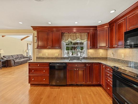 Nestled in the picturesque town of Stoneham this exquisite 4-bedroom split-level home offers a harmonious blend of modern comfort and outdoor recreation. Located near the renowned Bear Hill Golf Club, this residence presents an unparalleled opportunity for upscale living in a coveted neighborhood. Hardwood floors throughout the main living areas add a touch of sophistication and warmth to the home. The open-concept design creates a seamless flow between the living room, dining area, and kitchen, making it ideal for gatherings and everyday living.The kitchen boasts sleek countertops, modern appliances, and a convenient breakfast bar. Embrace the allure of outdoor living with an expansive backyard oasis. Unwind by the sparkling above-ground heated pool, perfect for cooling off on sunny days. The sprawling deck offers a versatile space for lounging, dining, and entertaining. Adjacent the basketball court doubles as a patio and beckons for family fun