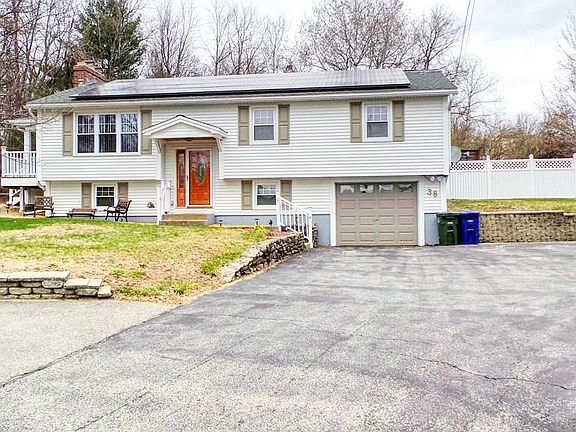 This beautiful home has something for everyone starting on the Main Level with hardwood flooring and solid wood doors throughout that flows into 3 bedrooms which at this time 1 is being used as an office and 1 as a workout room and from there into the Family room with wood stove (permitted) then into a enclosed porched with all finished wood interior. The lower level has the 4th bedroom and sitting room or living area and utility room all nicely up graded. Then head outside to the back yard and find the swimming pool with deck and private yard especially in the summer time to enjoy. The property also features two sheds and another two car garage with work benches and an entertainment room above the garage or anything you decide it can be. Also don't forget the reduced electric bill by way of the solar panels, seller states they have enjoyed years with no electric bill from late spring to early fall. This home will fill just about any needs you may have. Commuters Dream, Come See!