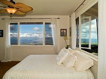 The Crown Jewel of Kulamanu!!! At the Ridge, this exquisite home, located at the end of a private drive, offers stunning bi-coastal views from upstairs, downstairs, and nearly every room in the house. This Developer's choice lot comes with a custom designed home signatured with style and sophistication. Exceptional lighting, Murano art glass, tumbled marble and limestone set an elegant ambience. Use the dual-sided gas, remote operated fireplace for keeping the temperature just right as you enjoy the amazing sunsets every evening. The gourmet kitchen includes cherry wood cabinetry with handcrafted bronze hardware, Kenmore Elite appliances, Bosch dishwasher and a gorgeous "Verde Vecchio" granite countertop. The all organic, mature landscape allows for a dreamy, private garden escape. An array of fruit trees, flowers and edible plants complete with a seven station irrigation system terrace the surrounding property.