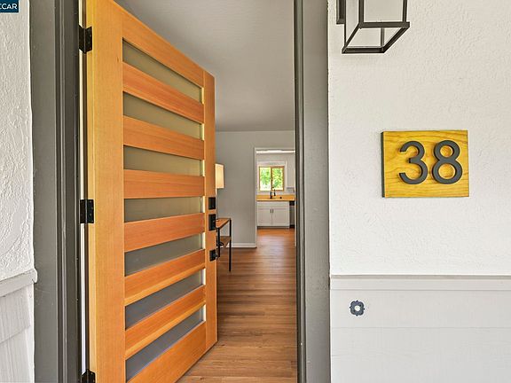 A custom home on a private street; first time offered by original owner's family. Updated; it sparkles through out! Newly painted in and out, new hardwood-look laminate flooring. New interior doors and stylish contemporary hardware. A make sense floor plan with lovely living room featuring a used brick fireplace with hearth. Dual-pane windows, central heat and AC. Kitchen/dining room, spacious family/media room, luxurious primary suite with new vanity, sink, counter and faucet, walk-in closet, garden view. Secondary bedroom is extra spacious. Hall bath is updated with contemporary vanity. Kitchen features newly refaced cabinets, new cooktop, fan, faucet and dishwasher, solid-surface Corian counters, breakfast bar and large dining area. Spacious family room for gatherings, projects, media room. Inside laundry. Lawn and patio for outdoor fun and relaxation. Blooming roses and mature trees in a creekside setting. Abundant parking; 4 cars can park side by side in the driveway, 2 car attached garage. Lot to right of the garage is included and offers many uses; contact City about options. Walk to nearby Sequoia Schools, downtown Pleasant Hill. Easy access to freeways 680, 24 & 4 and BART. Near major shopping. Pleasant Hill Park is walking distance too with picnic area and pool.