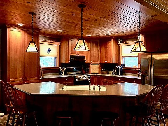 Beautiful Adirondack recreational retreat with easy access to countless lakes, direct snowmobile trail access, walk to Inlet Golf Course and the town of Inlet, Fern Park hiking trails right out your back door. Three story house with oversized, heated 2 car garage providing space for cars and toys. Lower level also has a bedroom, 1/2 bath, utility room and storage. Main floor offers open concept living with a beautiful cherry kitchen with solid surface countertops and new appliances and living room with 8' slate pool table and a dining nook. Main floor laundry. Large Master bedroom with infrared sauna, walk in closet and a full bath with an oversized jacuzzi tub. Upper level offers two additional oversized bedrooms (30' X 14') each with dual walk in closets, loft area and a full bath. Lots of wood accents throughout the house increase the ADK appeal. Standby generator, pellet stoves. wifi, internet, cable and cellphone booster. Covered front porch and wrap around deck. Stone firepit, additional outdoor storage building.