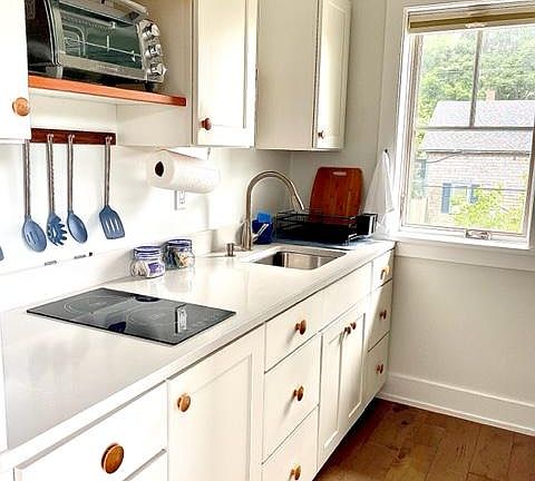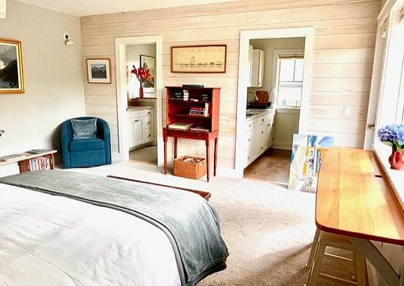 This light-filled space mixes Scandinavian inspired furniture, Maine art, and handcrafted wooden details, creating a comfortable spot within walking distance to Camden Village and it's bustling harbor. The Snug has a separate entrance, well-equipped kitchen, modern bathroom, tiled walk-in shower, comfortable mattress, luxurious linens, and a private deck to enjoy the neighborhood and catch the sunset. We are looking to rent to someone for the full 6 month period, November 1, 2024-April 30, 2025. We do require tenant to obtain renter's insurance. We have had much interest, so are arranging times for people to see The Snug based on when we received the inquiry. Available November 1, 2024 through April 30, 2025. All utilities and WiFi included. Parking is onsite. Tenant is responsible for taking trash and recyclables to transfer station.