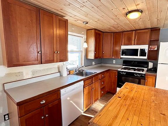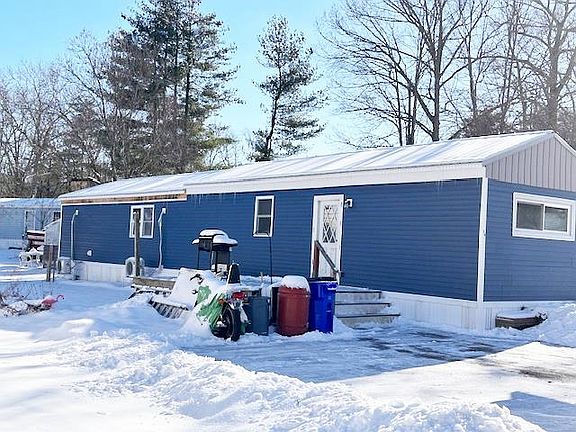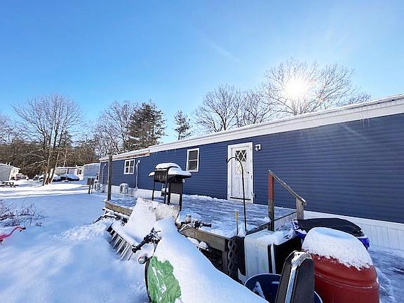 Great 2 bedroom/2 bath home all redone! New vinyl siding, new vinyl flooring, new wood ceiling in living room. Fully applianced kitchen with cherry cabinets, new dishwasher, new microwave, electric stove and refrigerator. Living room has hookup for propane heater/gas fireplace and beautiful wood ceiling. Vinyl replacement windows are approximately 5 years old, PVC plumbing is almost completely within the property to avoid freezing. 3/4 bath with laundry plus another full bath and 2 good sized bedrooms. Outside, enjoy the 16x12 deck plus a 12x10 shed for storage! Park allows pets (some dog breed restrictions), has a playground and in-ground pool.