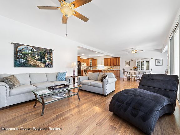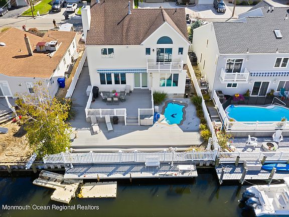 Stunning Waterfront Living--spend your days relaxing in sun-soaked luxury! Resort-Style home with enough space for the whole family! The paver driveway and walkway lined with professional landscaping lead you up to the upgraded front door with sidelights and into a bright and sunny foyer featuring ceramic tile. The formal living room is sure to impress all who enter with its vaulted ceiling and huge windows. You'll be dying to entertain in this amazing gourmet kitchen, stainless steel appliances, shaker style solid wood cabinets, corian countertops, custom tile backsplash, breakfast bar with storage and space for two stools, and long island overlooking the formal dining area. The expanded formal dining area overlooks the deck with amazing water views! The open floor plan flows into the family room--perfect for every day living or entertaining! Cozy up in the family room by the gas fireplace featuring a tumbled marble surround,custom wood mantle, and door out to the deck! The first floor is complete with a powder room, bedroom or possible home office, and a door into the garage. Upstairs you will find convenient second floor laundry room, a spacious bedroom with vaulted ceilings, picture windows, and a huge closet! The main bath has been updated with granite countertops and a jetted shower. The second bedroom upstairs features water views, a ceiling fan, and closet. You'll never want to leave this master retreat--dramatic vaulted ceilings, a walk-in closet, balcony overlooking the deck and water, full bathroom with a stall shower, his and hers sinks, linen closet, and jacuzzi tub! There's plenty of storage in this home--from the huge attic with pull down stairs to the extra storage in the garage. This home has been lovingly maintained--the hot water heater was replaced in 2020, sprinkler system, neutral decor, and so much more! Enjoy gorgeous sunsets from your own oasis on the deck! The yard features a bulkhead, heated in-ground pool with a poured rubber surround with a custom dolphin design, four level trex deck with an electric awning, a fence and gate leading you down to the lighted dock. Bring your boat and be out on the open water in minutes or over to Point Pleasant in about 20 minutes! You won't want to miss this gorgeous home in an amazing location!