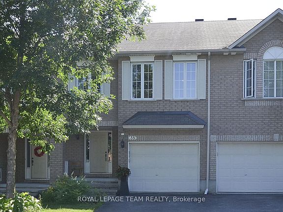 Beautiful street presence, with full brick facade and interlock front walkway of this open concept townhome with two plus bedroom/family room in the finished walk-out lower level. Situated on a quiet circle in Kanata Lakes, backing onto a treed path/park & is walking distance to Kanata Centrum & Signature shops, bus service & in a top school district. Big tiled foyer with double closet & inside entry to garage.Tremendous great room style living room has maple strip hardwood flooring, soaring ceiling height, a magnificent wall of windows for natural light & a gas fireplace with tile surround. Adjoining dining room has the same hardwood flooring & decor as the living room. Marvelous, modern kitchen has tile flooring, maple cabinetry, tile backsplash & an island. 2 bright windows allow natural light to shine into the kitchen. Stainless steel fridge, stove & dishwasher. From the kitchen is a garden door which opens to the deck. Completing the main level is the convenient 2 piece powder room with tile flooring, pedestal sink & tall mirror. Berber carpeted staircase to the 2 bedrooms & full bathroom on the 2nd level. Lovely primary bedroom has neutral decor, berber carpeting, overhead light, 2 tall double windows & 2 double closets. Cheater access available to the main bathroom which has a vanity sink, big mirror, medicine cabinet & a tub/shower combined with tile surround. Bedroom two has berber carpeting, overhead light, sunny double window & a double closet. Walk-out lower level family room or bedroom suite for the teen or in-law, has neutral carpeting & decor, overhead lighting & a patio door to the fully fenced backyard. Adjoining office area has a large double window, overhead light & a wet bar area. Full bath has a vanity sink, tall mirror & a combined tub & shower with tile surround. Balance of the lower level has the laundry area with washer & dryer plus storage space. Most photos are from a previous listing.