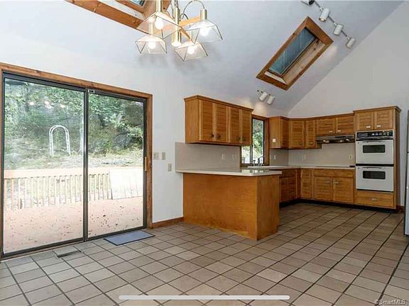 Sought after location close to schools and Trumbull Center.... and on the corner of a cul de sac! Soaring ceilings, newer mechanicals and roof, freshly stained front porch. New carpet in walkout lower level family room, too! Just needs slight updating, but well worth the minimal effort- it's really not that much. Six skylights, extra large eat in kitchen w/breakfast bar that seats three PLUS a breakfast area w/sliders out to a 12 x 24 deck. Main level master has a dressing area w/separate sink, walk in closet and full bath. The "at-grade" lower level with sliders leading outside is perfect for a recreation room or possible in law. This home is a lot of house for the money for the value-driven buyer. Perfect commuter location, too. House sits back on perfectly private property w/gorgeous stone walls and beautiful rock formations.