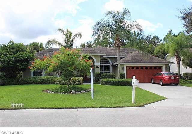 Highly sought after North Naples area in the Madison Estates community, with low annual cost of ownership: Single Family home with pool and spa, over-sized yard, extended garage, spacious lot adjacent to the pond. Home is on a cul-de-sac street, and features include new granite counter tops, custom professional paint, wainscoting, beautiful landscaping, southern rear exposure with screened lanai/pool area backing to plush greenery and separate patio area for grilling and fire pit.