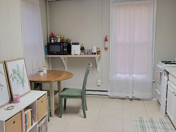 Neat and clean apartment in multi-family home. Studio style layout but better with separations features LR/Bedroom Combo with new vinyl flooring, double slider closet, and a nook for a desk. Really spacious Kitchen offers space for table and chairs, ceramic tile, ample cabinets, room for caddys, shelving, more. Previous tenant also utilized space for shelving. Also find one full Bathroom with tub/shower. Laundry inside on the first floor in a common area. There is 1 assigned parking spot. This home offers updates and is bright. Former tenant used a comfortable full sized day bed that doubled as a couch and boasted a living room with tv and desk that doubled as a bedroom and nightstand. Great space for a studio and nice unit.