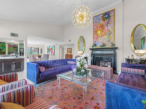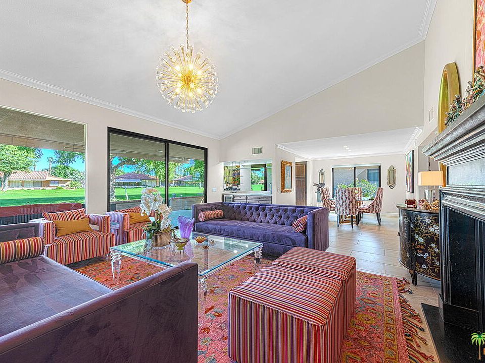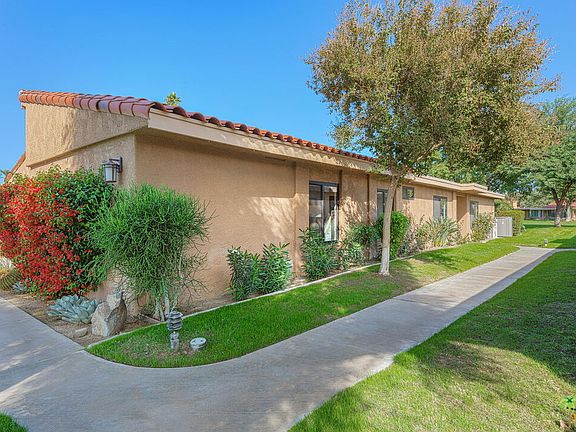 Centrally located in Rancho Mirage this highly upgraded condo features 2 bedrooms plus a Den, 2 baths and a powder. The "Madrid" plan is certainly one of the most desired and is the largest floorplan in Sunrise CC. Both the Primary and Guest bedrooms have bathroom en-suites. With a newer kitchen, bathrooms, windows, paint, a/c-furnace, ceiling fans and updated lighting, this condo really is move in ready. Converted atrium added to 3rd bedroom is being used as a den with see-through fireplace to the living room voluminous vaulted ceilings. Inside laundry room including a full refrigerator for the cooks and entertainer out there, and a/c in the garage to protect your beloved cars. Newly constructed wall around golf-course facing patio has stunning views of the golf course, and also one side of the patio features artificial grass, very handy for dog owners. Sunrise Country Club is a guard-gated community with 746 residential condos, an 18-hole golf course, 11 championship tennis courts, 8 Pickle Ball courts and 21 swimming pools and most with spas. Club amenities include golf, tennis, fitness center, clubhouse dining room & grill at discounted rates. Conveniently located just a 5 min drive to major stores, Eisenhower hospital and Sunnylands in beautiful Rancho Mirage.