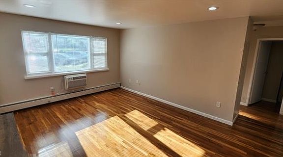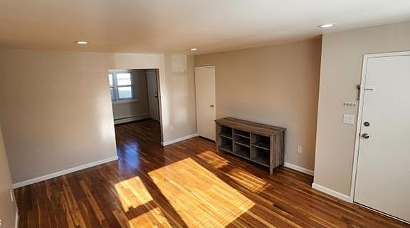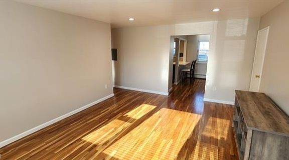 This spacious first floor two bedroom condo features a large living room with a huge storage closet, dining room with a second entrance to the back and it's one assigned parking spot. A beautiful kitchen with plenty of top and bottom cabinets allowing for plenty of storage. Quartz counter tops and a breakfast bar, refrigerator, dishwasher & microwave. Completely renovated bathroom. Freshly finished hardwood floors throughout. This unit also features lots of closet space in both bedrooms. There is also plenty of parking on the cul-de-sac. The nearest laundry is steps out of the back door. A beautiful inground community pool also awaits. Walking distance to NYC bus. Shopping is nearby, trader Joe's, Whole Foods, Restaurants, Schools & more.
