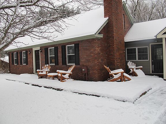 Four bedroom, two bath brick and wood sided Cape has an attached heated two car oversized garage and is located on a quiet street close to town. Home features an open floor plan with updated kitchen and granite countertops, hardwood and tile floors. The basement is sunny and bright with a home theater room, playroom, office and laundry room. Enjoy the deck overlooking eight wooded acres or relax on the goshen stone front porch. Home features two complete heating systems for backup or achieving maximum comfort and efficiency. The propane forced air system runs with a high efficiency American Standard furnace and heat pump. You also have the option of using electric baseboards located throughout the house. The house is centrally air conditioned as well. This is a quality built house with five panel solid core doors through out, Anderson windows and oversized sliding doors to rear deck. Beautifully landscaped gently sloping yard with gardens great for the whole family! Even has a combination chicken coop and shed in the back yard with electricity. Only a ½ mile to schools, 1 mile to UMass and 1.5 miles to downtown.