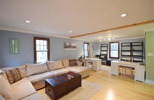 BEACH LIVING YEAR ROUND!! Well-Maintained & Beautifully Updated Cape in Desirable Scituate Location! Spacious Open Concept Floor Plan with new bamboo hardwood floors, stone fireplace, crown molding & lots of natural light! Large living room recently remodeled, flows nicely into formal dining room & kitchen area! Potential to be used as living/dining room combo. Formal dining room with stone fireplace opens up to kitchen! Great master bedroom with twin closets & slider to private balcony! Remodeled second bath! Partially finished walk out basement, great space for media or playroom! Ample storage space! Good size yard with storage shed! Lots of outdoor living space including large wrap around deck & private balcony. Potential for patio space! On quiet side street only 1/3 mile from beach! New siding (2012)! (Listing 6276367 Confirmed 1/8/2014)