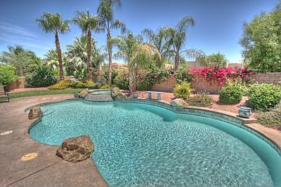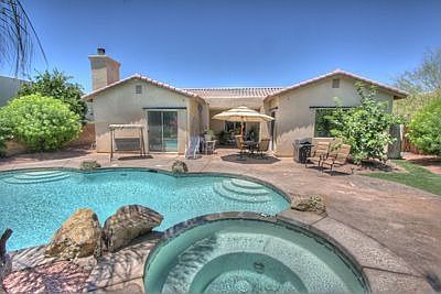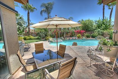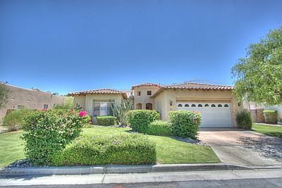 Live behind the gates of the Tucson community in desirable Palm Desert. Fabulous cul-de-sac location! Enter through the custom wood door into this gorgeous home w/ approx. 2330 sq. ft. of comfortable living. Four BR & 2.5 baths & on a premium lot! Newly painted, ceiling fans, evaporative cooler, soaring ceiling, tiled floors & a light & open floor plan! Cook''s kitchen w/ newer appliances, center island, Corian counters, glass block window & walk-in pantry are adjacent to the spacious great room w/ fireplace & hearth! There is a formal dining room that can be used as a formal living room or playroom! Master suite with dual sinks, separate tub & enclosed shower. Sliders to magnificent landscaped yard w/ mature trees that offer plenty of privacy & covered patio area is great for entertaining! Relax in the sparkling pool & spa w/ serene spillway while enjoying the resort like feel of this home w/ picturesque mountain views! Just minutes the top rated schools! Low homeowners due of $75!