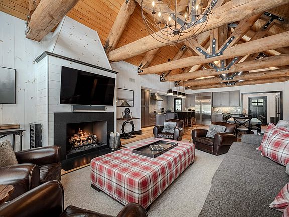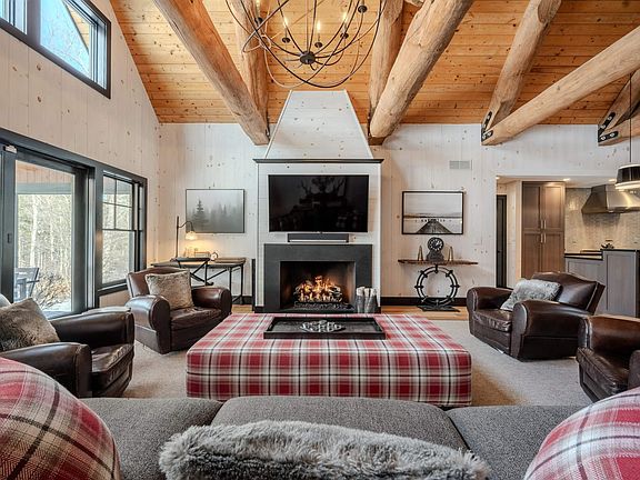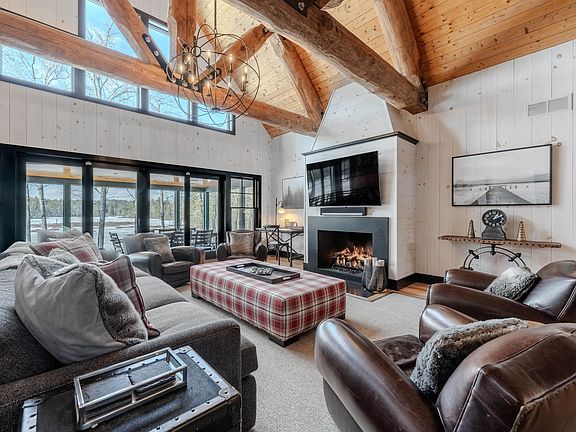 Ultimate retreat for hunters or nature enthusiast awaits in this custom log home with private driveway on 27+ wooded acres with 1200 acre pond.The perfect blend of rustic elegance and modern amenities with smart Green Solar. Plenty of space for entertaining with expansive floorplans on both levels. The main level offers a two story vaulted Great room, built w/exposed Standing Dead Wood log trusses from South Dakota and a IsoKern gas fireplace. Walk through French sliders to a covered porch overlooking your own waterfront to include a stone patio with gas firepit and new hot tub. Beautiful kitchen with custom cabinetry, subzero appliances, Absolute Black honed granite counter tops. Dining area was designed to host large gatherings. Flooring on the main level is 8" hickory with a European Oil finish. Primary bedroom with walk in closet, dual vanity, large tile shower with a bench and rain showerhead. The bunk room with six Queen size log bunk beds and ensuite bath. The third guest room and adjacent full bath complete the main floor. The lower level has an attractive game room, the walls are reclaimed barn siding and antique brick. Polished concrete floors with radiant heat, Bar with Cherry countertops and ice maker. A half bath, bonus room, two car garage and two storage areas complete the lower level. Irrigation system and detached 3 car garage. Tree stand, gazebo, hunting blinds and beautiful trails to enjoy. Deeded access to dock on Swains Lake. Offered fully furnished.