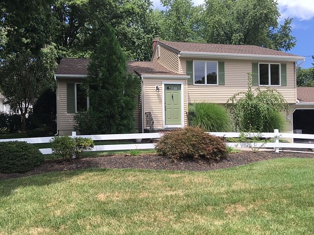 BLAUVLET, NEW YORK. 3/2 Split sits on beautiful, tranquil lot with backyard deck right off the kitchen. 2 Car oversized attached garage with overhead remote openers on both sides and door to backyard as well. Inside features LR with large window, new eat-in kitchen,all new stainless steel appliances 3 BRs up and full bath up. Hardwood floors. Downstairs to cozy den with cedar closet, another bath and a convenient utility/laundry room . Access to back yard from this level too. Fantastic location near Palisades Parkway and easy commute to NYC. New A/C and heat unit! All new windows,siding and roof.