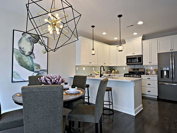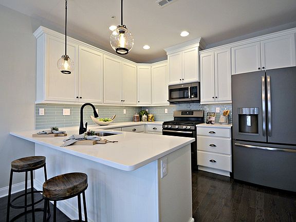 Model Home now available!. This stunning model home at Penn Square features all the bells and whistles you want without the cost! Entering the Avery I from the quaint covered front porch, you enter the formal foyer of the home which features beautiful hardwood flooring, custom wall trim details, a large coat closet and access to the 2-car garage. Continuing up to the main living level of the home, you are met by the open-concept layout of the Avery where airy 9' ceilings and hardwood flooring run throughout. The spacious kitchen design will be any self-proclaimed chef's favorite with its large wraparound peninsula with overhang, furniture-grade white kitchen cabinetry, white quartz countertops, stylish slate GE appliances, and custom ceramic tile backsplash. Abundant natural light fills the entire main living level, highlighting the nearby dining area and living room with built-in entertainment console. When the weather is nice, step out through the glass sliding door and spend some time taking in the view on the extended private covered deck. A private powder room can also be found on this main living level. Upstairs, the spacious owner's suite features a walk-in closet, large secondary closet, and luxurious owner's bath with designer ceramic tile package, double bowl vanity with quartz tops, and glass enclosed shower with ceramic tile wall surround & marble bench seat. A secondary bedroom, full hall bathroom with designer ceramic tile package, and spacious 3rd floor bedroo