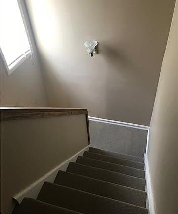 Very clean! Right side of a 2 story duplex, 2 bedroom, 2.5 bathroom, newer carpet upstairs, and newer tile downstairs. Home has gas heat, gas cooking, and central air.